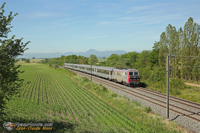 Arborant la dernière version de la livrée Grand-Est où le noir remplace (désavantageusement) le bleu, la 26158 arrive à Trilport (77) en tête du TER Strasbourg-Paris.