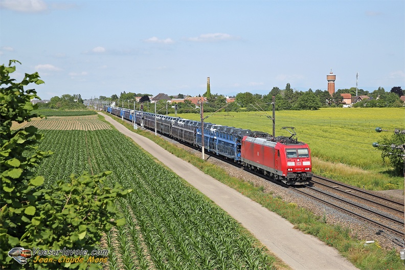 La BB 37039 passe à Huttenheim (67) le 19 juin 2024, en tête d'une lourde rame de caisses mobiles de l'axe Belgique-Suisse.