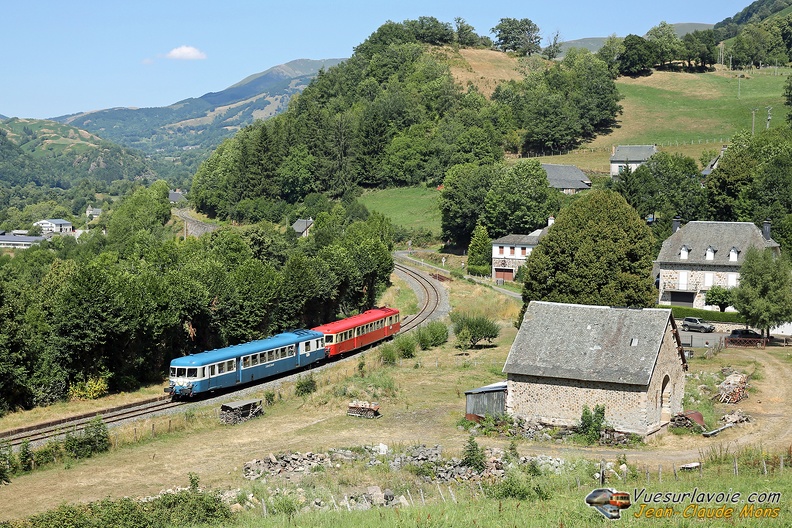 Partis de Lourdes où ils s'étaient rendus deux jours plus tôt dans le cadre d'un voyage spécial, les X 2907 bleu et 2844 rouge de l'association "l'Autorail Limousin" passent sur le viaduc des Sept Ponts à l'entrée sud de Cahors (46) le 14 mai 2025, lors du trajet retour vers Limoges.