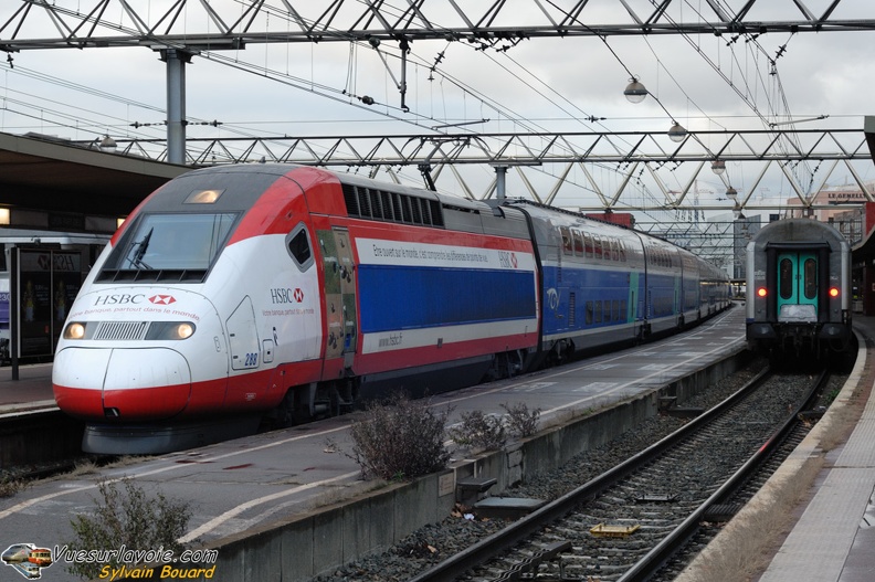 En gare de Lyon Part Dieu, le TGV Duplex 284 attend son départ pour Paris Gare de Lyon sur le TGV 6628 (Lyon Perrache - Paris Gare de Lyon).